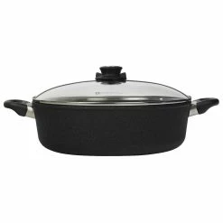 - Safe on gas, electric, radiant ring, ceramic, and halogen stovetops